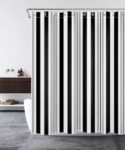 Simple Striped Shower Curtain Black White and Grey Shower Curtains for Bathroom Minimalist Geometric Polyester Anti Mould Waterproof Small Bath Curtain Set with Hooks,59×71 inches