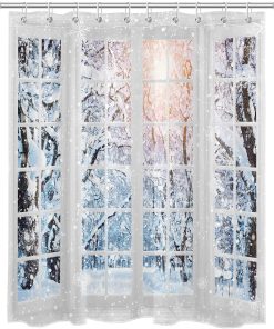 Snow Forest Shower Curtain Winter Scenery outside Window Shower Curtains for Bathroom Trees with Snowflake Polyester Anti Mould Waterproof Small Bath Curtain Set with Hooks,59×71 inches