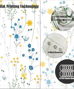 White Floral Shower Curtain 180 x 180cm Drop Weighted,Heavy Duty Polyester Wet Room Shower Curtain Mould Proof Bath Shower Curtain with 12 Hooks Washable Quick-Drying (71″x71″)