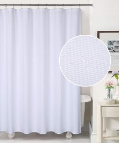 White Waffle Shower Curtain,Heavy Duty Polyester Water-resistant Machine Washable Bathroom Shower Curtain with 12pcs Hooks,180 x 180cm