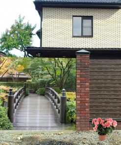 Wooden Bridge Outdoor Garden Shower Curtain, Quick-Drying Waterproof Outdoor Garden Decoration, Summer Autumn Bath Curtain with 12 Hooks, 180X180cm/ 71X71 inch