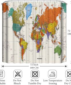 World Map Bathroom Shower Curtains Fabric Shower Curtain Waterproof Curtains for Bathroom Quick-Drying Kitchen Curtains Machine Washable with 12 Hooks-Multi-Color 180CM*180CM-World Map