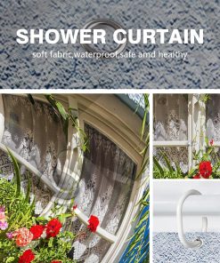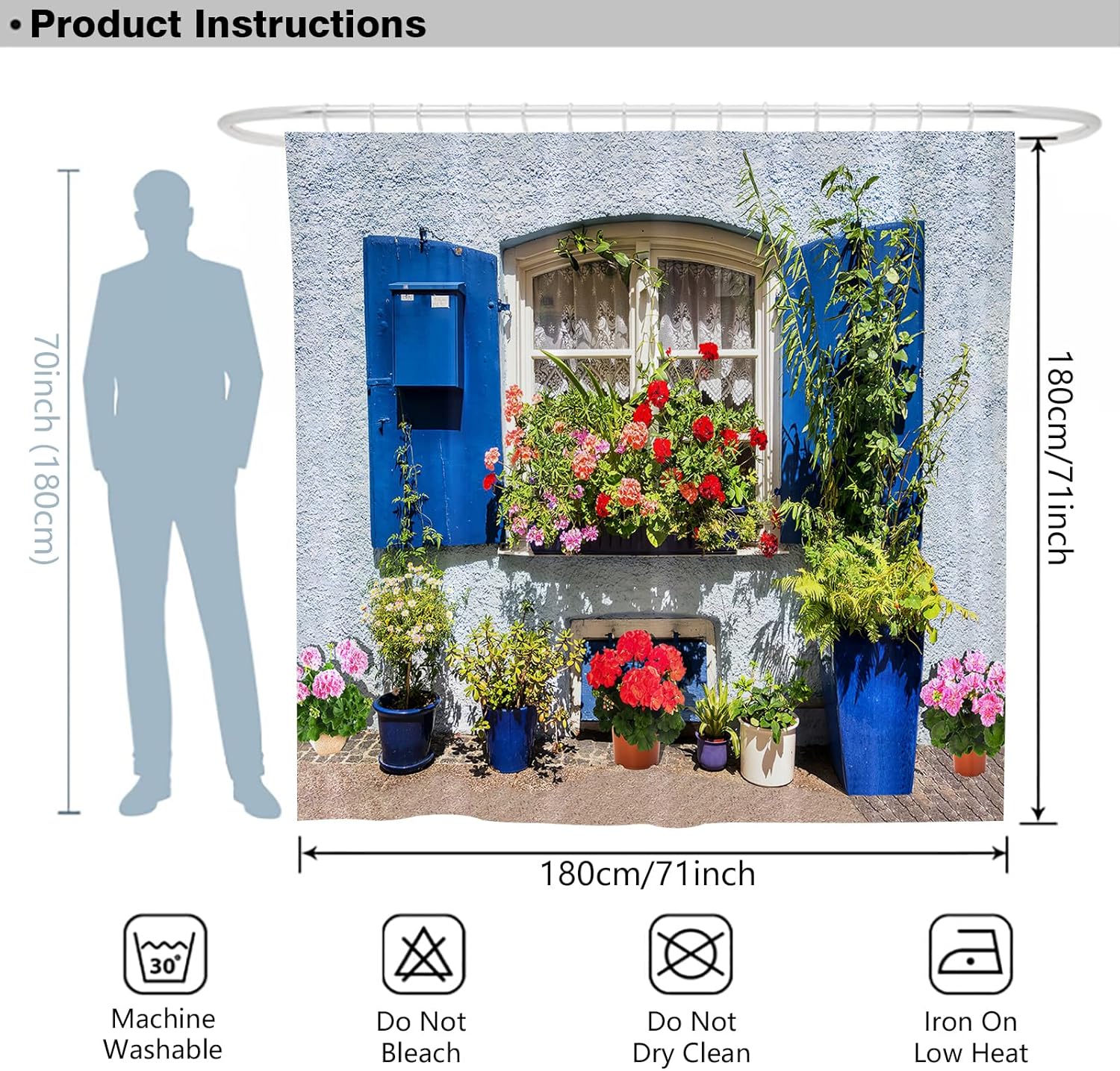 3D Printing Home Garden Flowers Shower Curtain, Blue Window Garden Decoration, Waterproof Quick-Drying Polyester Fabric Bathroom Curtain with 12 Hooks, 180X180cm/ 71X71 in