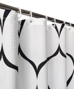 Bathroom Shower Curtain Waterproof Anti Mould Mildew Resistant, Heavy Duty 100% Polyester Fabric Curtains Liner with 12 Curtain Hooks, Lattice Black & White, 180cm x 200cm