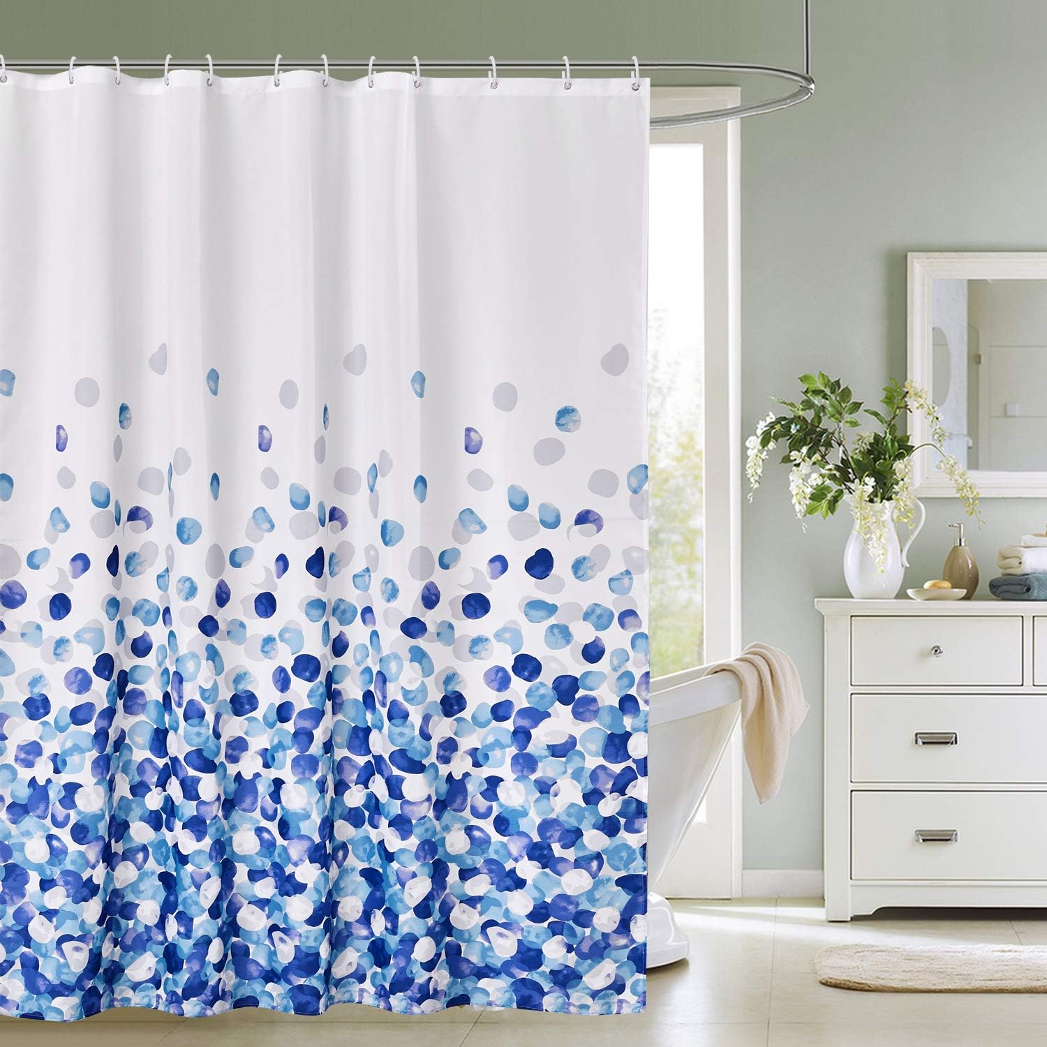 Bathroom Shower Curtain Waterproof Mould Free Mildew Resistant, Heavy Duty 100% Polyester Fabric Curtains Liner Washable & Wipe Clean with 12 Curtain Hooks, Blue Petals, 180x200cm