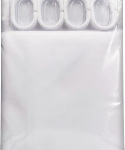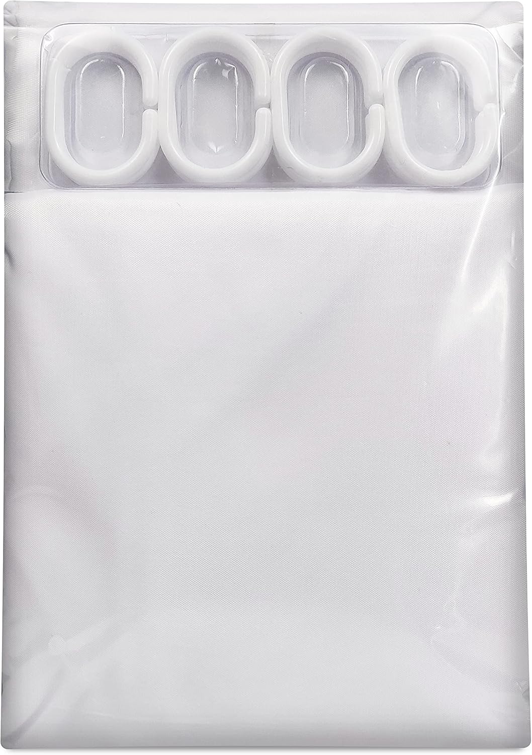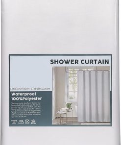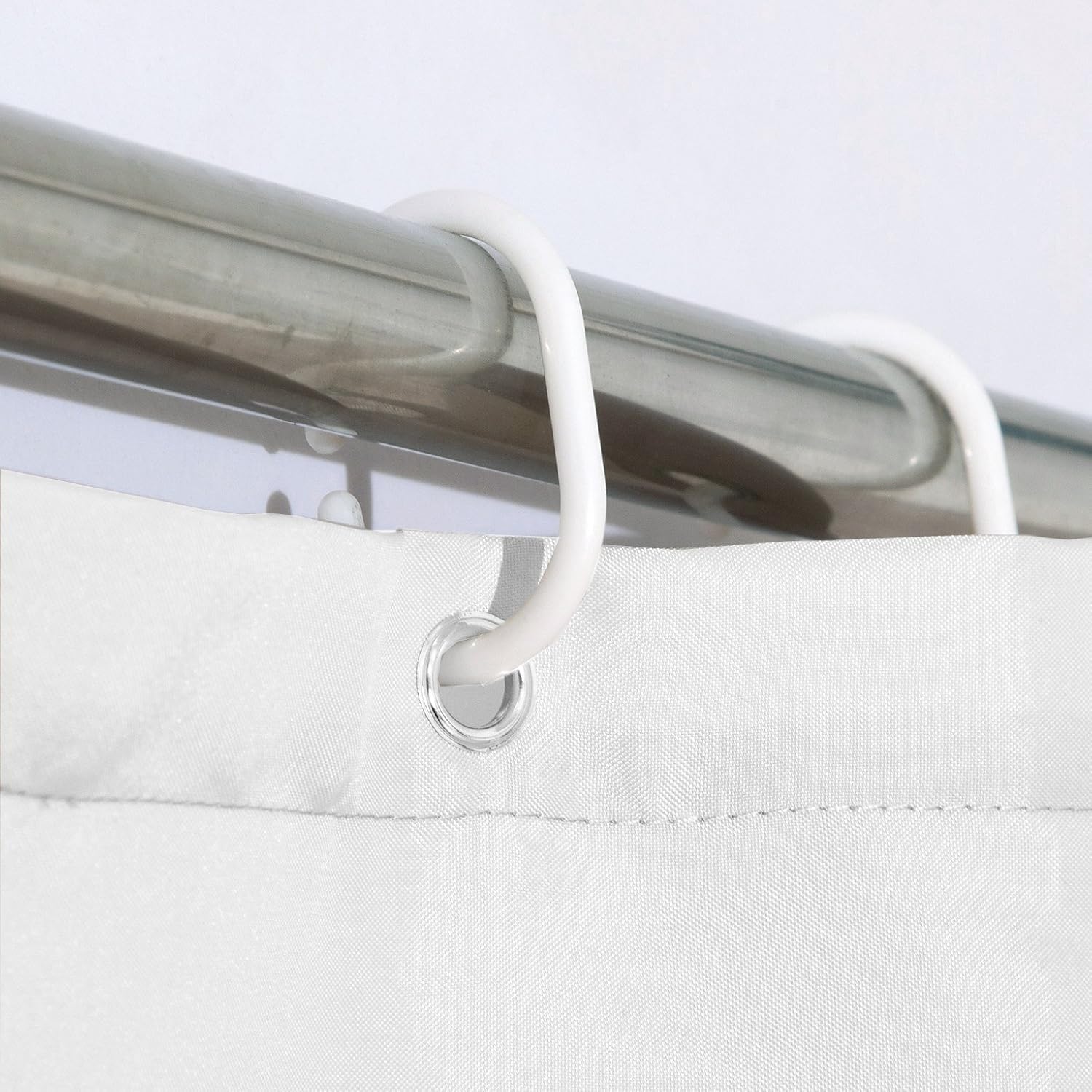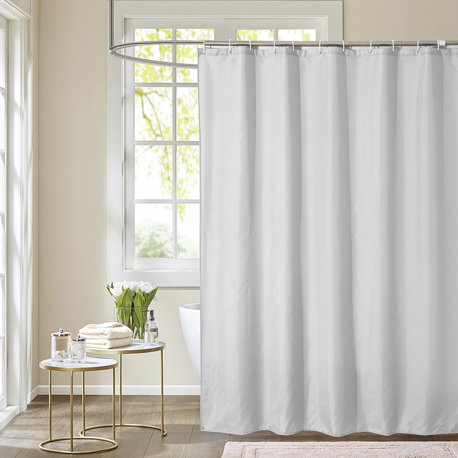 Bathroom Shower Curtain Waterproof Mould Free Mildew Resistant, Heavy Duty 100% Polyester Fabric Curtains Liner Washable & Wipe Clean with 12 Curtain Hooks, White, 180x200cm