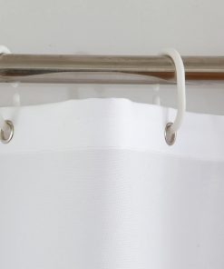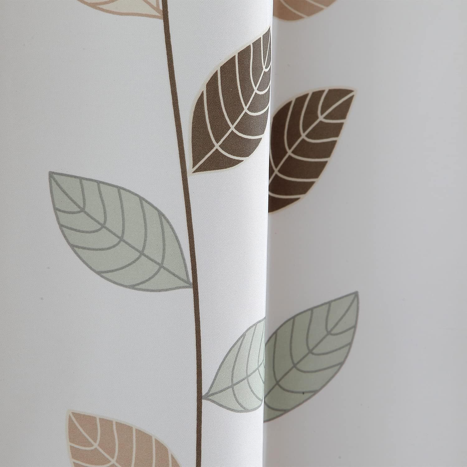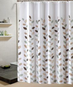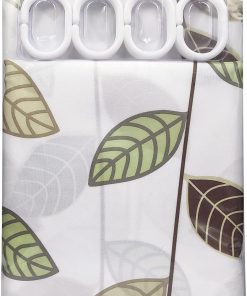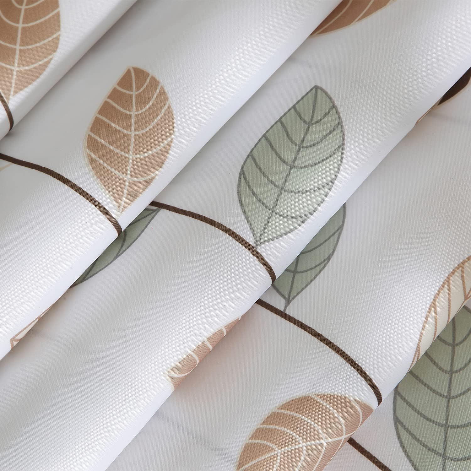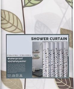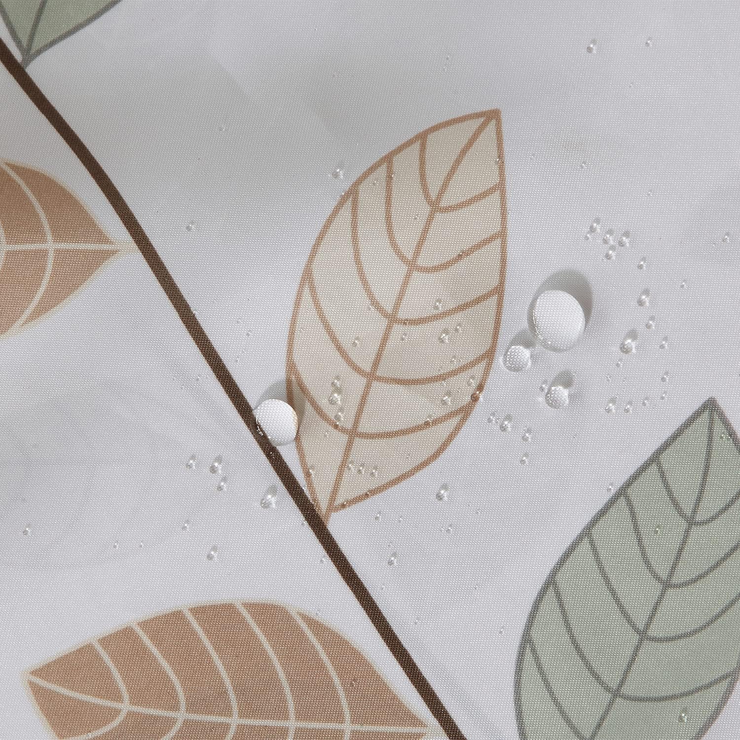 Bathroom Shower Curtain Waterproof Mould Free Mildew Resistant, Heavy Duty 100% Polyester Fabric Curtains Liner Washable & Wipe Clean with 12 Curtain Hooks, White With Leaves, 180x200cm