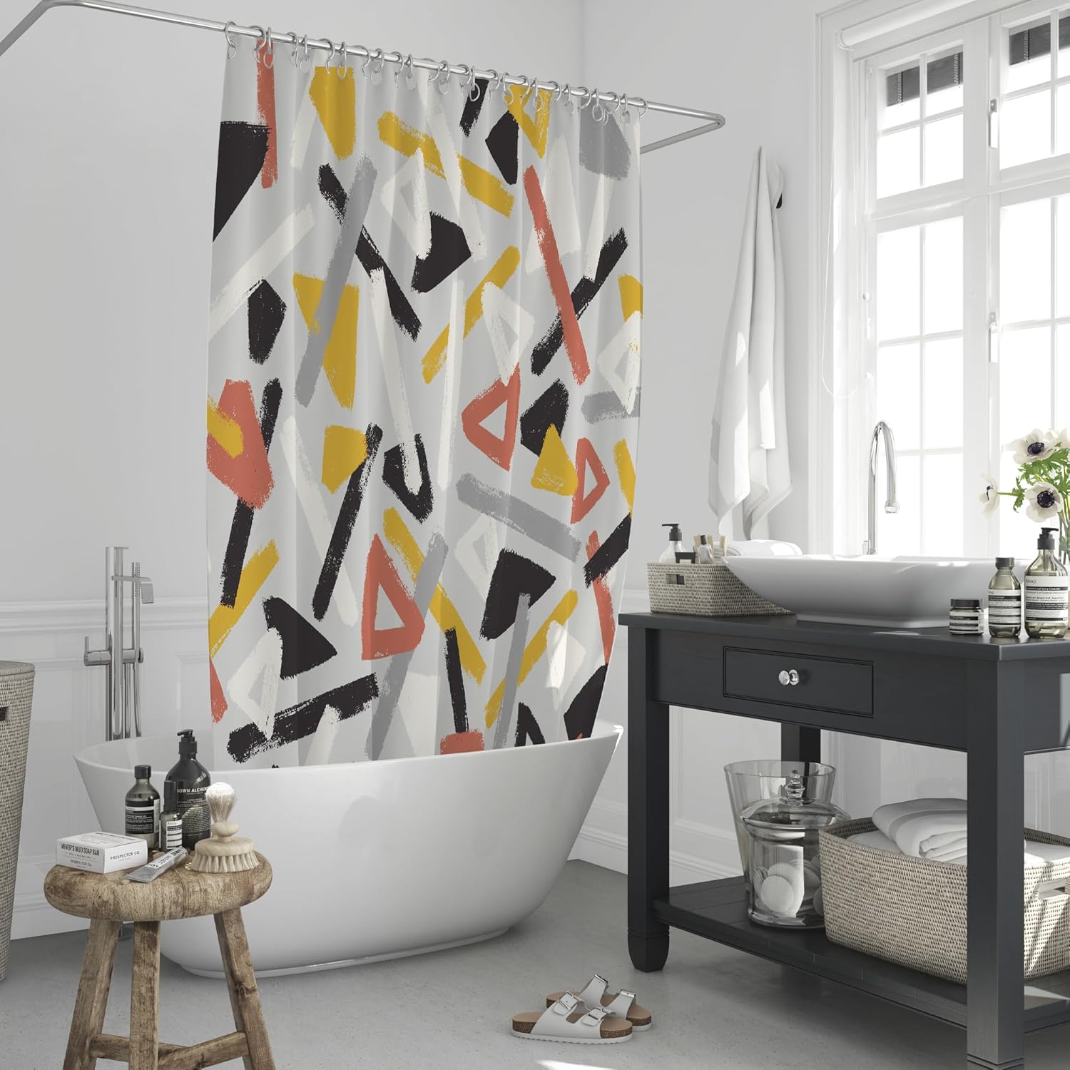 - DURABLE & WATERPROOF – Made of polyester fabric, our abstract geometric shower curtain is able withstand wear and tear. Unlike others, this bathroom curtain will last for years without fading or tearing.