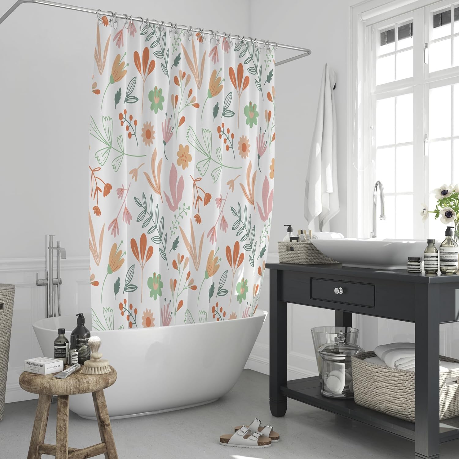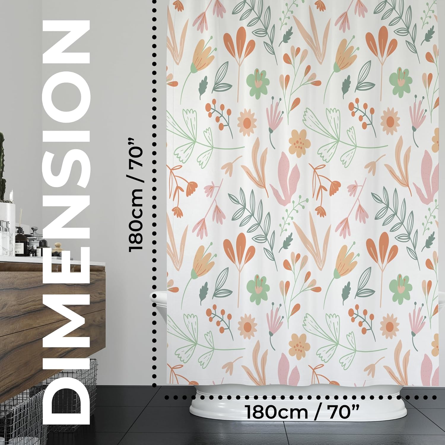 - DURABLE & WATERPROOF – Made of polyester fabric, our floral shower curtain is able withstand wear and tear. Unlike others, this bathroom curtain will last for years without fading or tearing.
