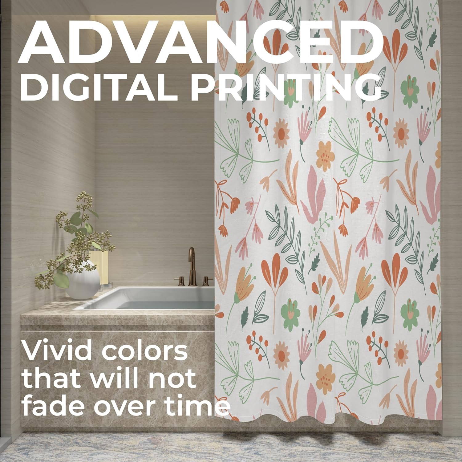 - SPRUCE UP BATHROOM DECOR – Our floral theme shower curtain features a beautiful and vibrant design that will bring the outdoors in. The perfect way to add a touch of nature to your bathroom!