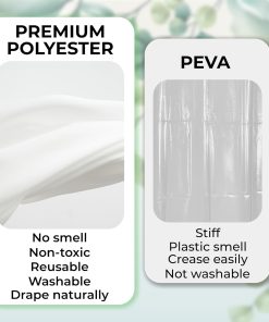 - EASY INSTALLTION – The bath curtain comes with 12 plastic hooks that you can easily put on the 12 rust-proof grommet holes of the curtain. Super easy and you can do it without any additional tools.