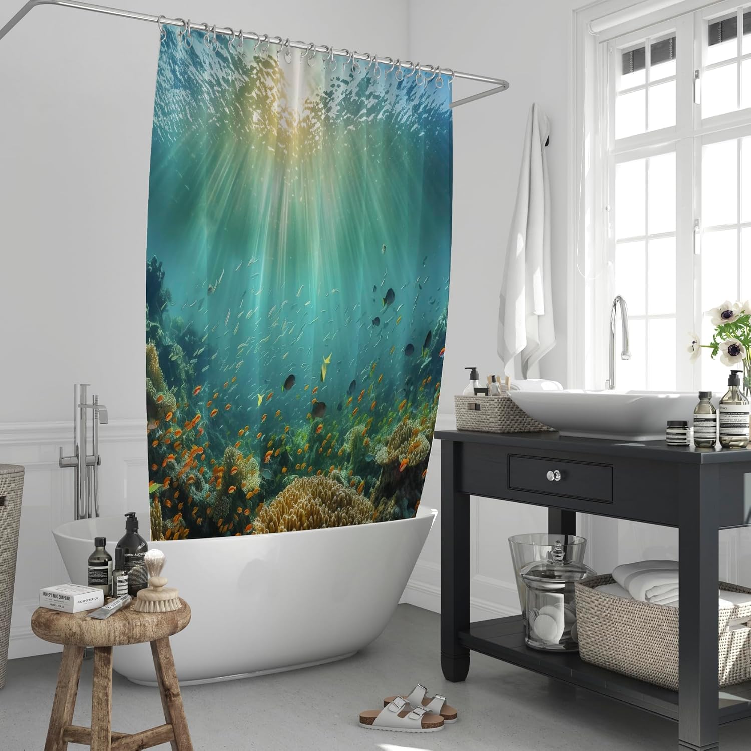 - SPRUCE UP BATHROOM DECOR – Bring the beauty of the marine life into your bathroom with this stunning ocean shower curtain. The vibrant colours and detailed patterns will transport you to a tropical paradise.
