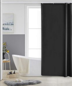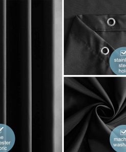 Black Shower Curtain Anti Mould Resistant Waterproof Bathroom Curtains Washable Polyester Fabric 90x180cm with Weight Tape for Bath Wet Room 35×72 Inch.