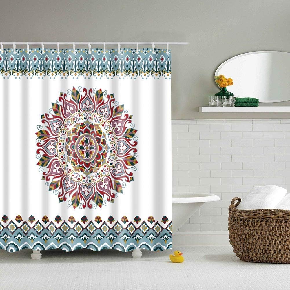 Boyouth Colorful Flowers and Geometries Pattern Digital Print Shower Curtains for Bathroom Decor,Polyester Waterproof Fabric Bath Curtain with 12 Hooks,70×70 Inches,Multicolor