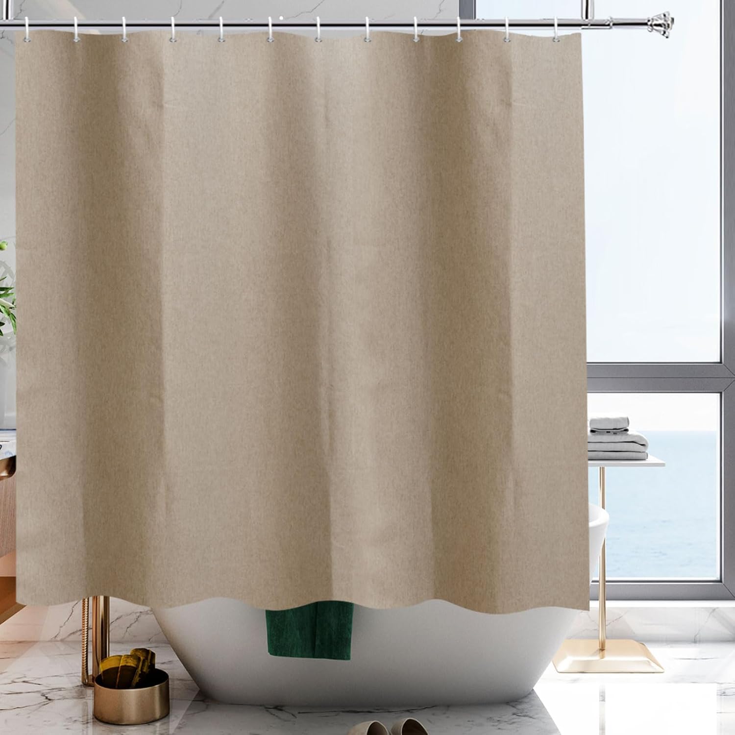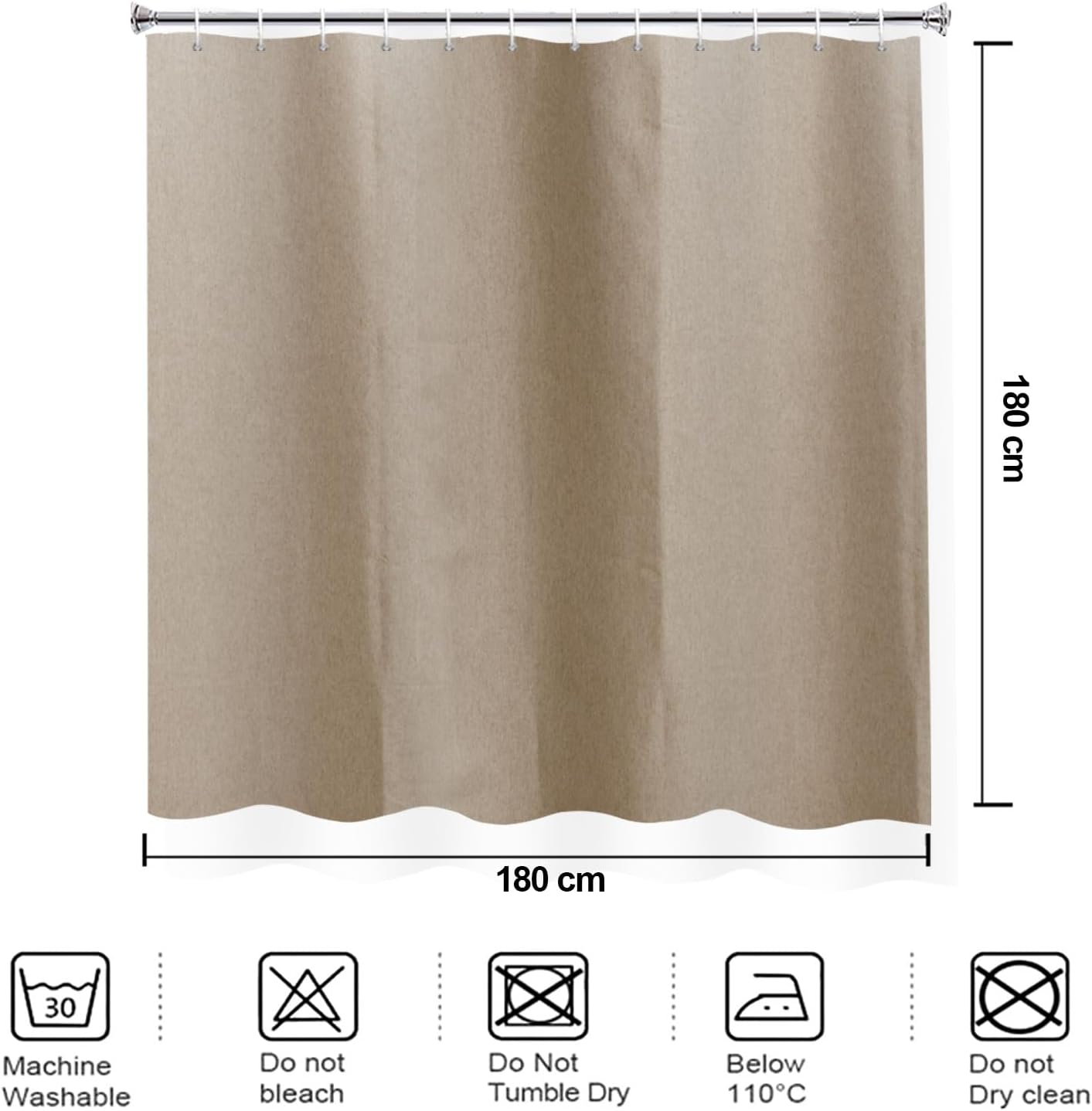 - Package Includes – Brown Linen Shower Curtain with 180x180cm(1 pc) and several white plastic hooks. Shower curtain rod NOT included.