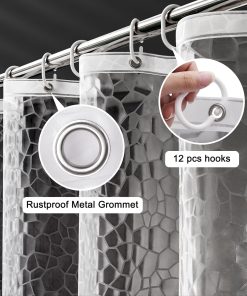- Lasting Durability: This clear shower curtain is sturdy with 12 rustproof metal grommets , can be hung and taken out easily and last a long time.