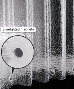 - 3D Attractive Design: Very modern and classy clear with pearl white 3D pebble design that allow enough light to come through and let you have privacy .180*180cm fits most standard size bathtub or shower tall and suitable for straight or curved shower liner rods.