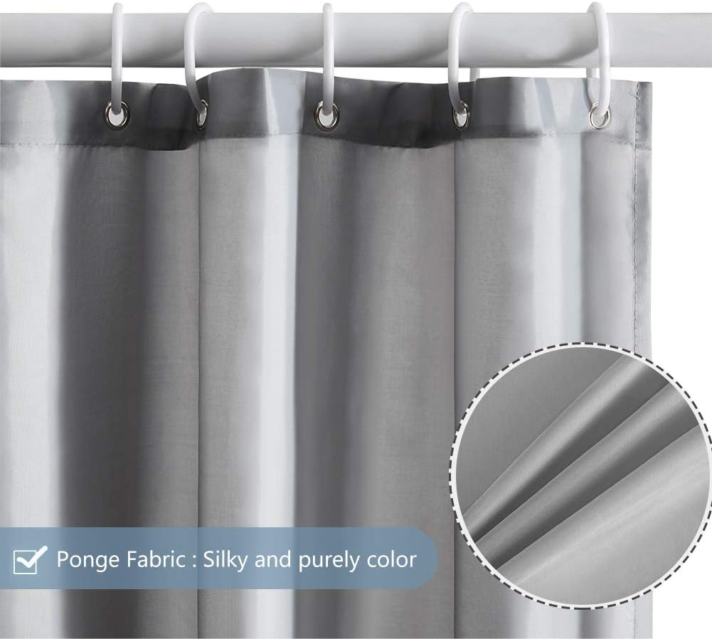 - Strengthen:First, the waterproof coating improves the water resistance of polyester fabrics.Secondly, the eyelets are reinforced by copper rings to avoid tearing.In addition, the bottom of the shower curtain has Weight Tape.