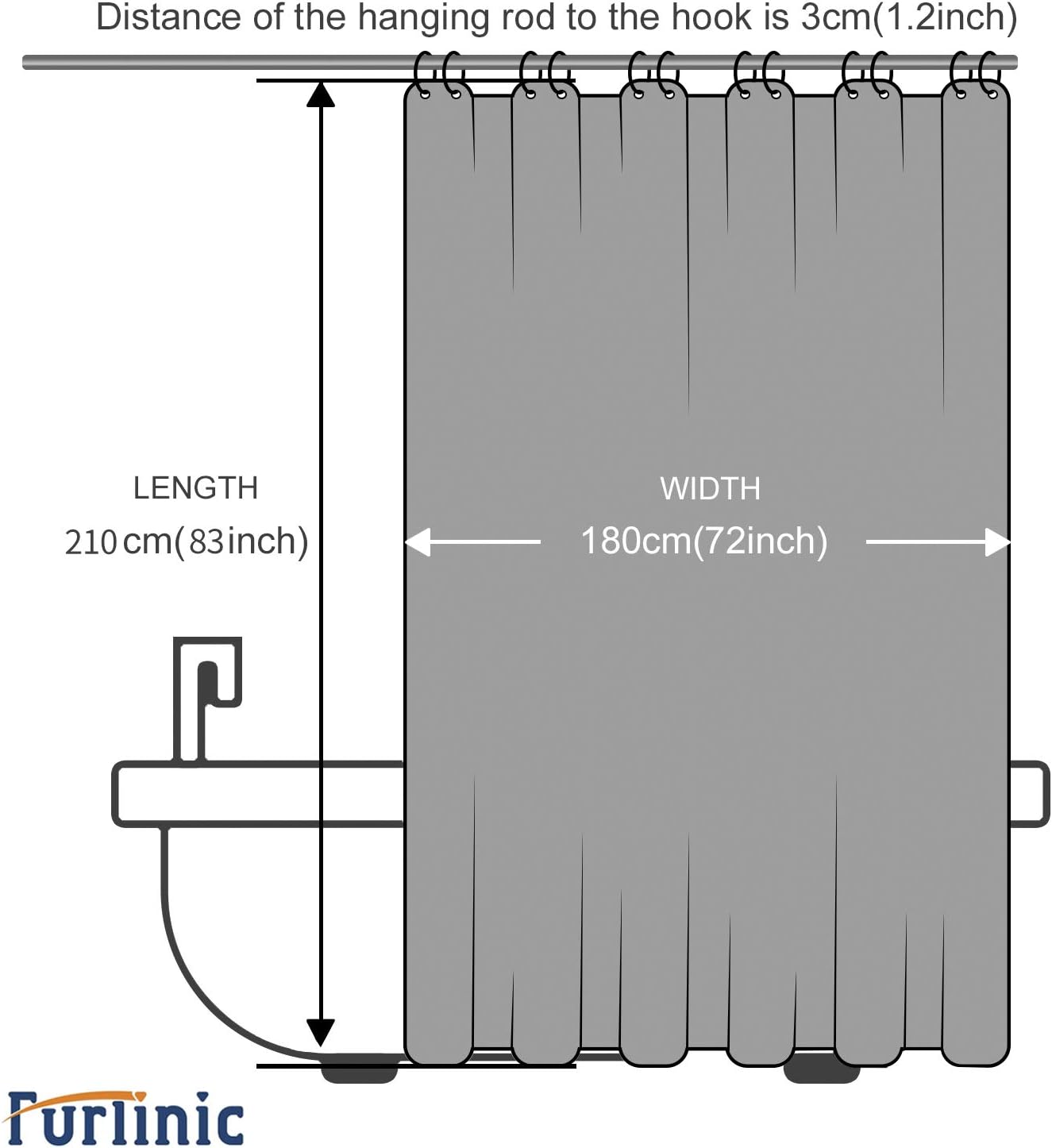 - Basic Information:Width 180cm x Height 210cm /72 x 83 inch.Each package contains 1 shower curtain and 12 hooks.