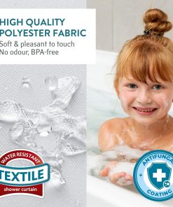 - Shower curtain made of polyester, a waterproof, mould and mildew proof material, the perfect solution for your bathroom