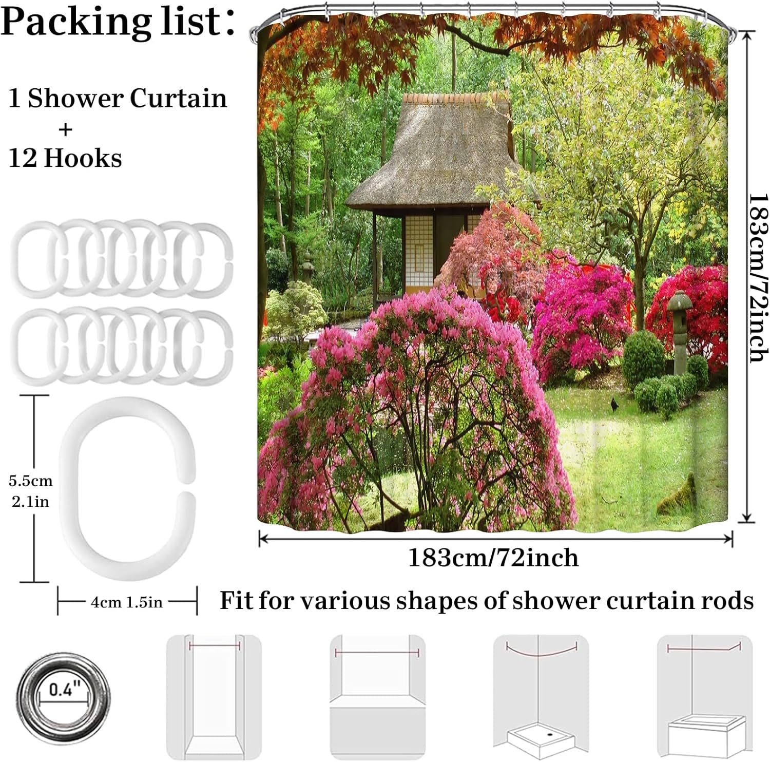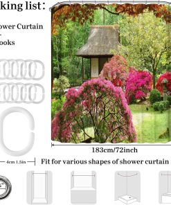 - 【Easy to Install】: Reinforced button holes work with most types of shower hooks and ring for quick and simple installation (with 12pcs hooks); Top hem is reinforced to hold up to long term use and will help this curtain keep its shape; This shower curtain will complement any bathroom, use at home, apartment, condo, hotel, camper, RV, dorm, school shower, athletic club, gym and everywhere else you need a reliable shower curtain or liner.