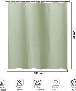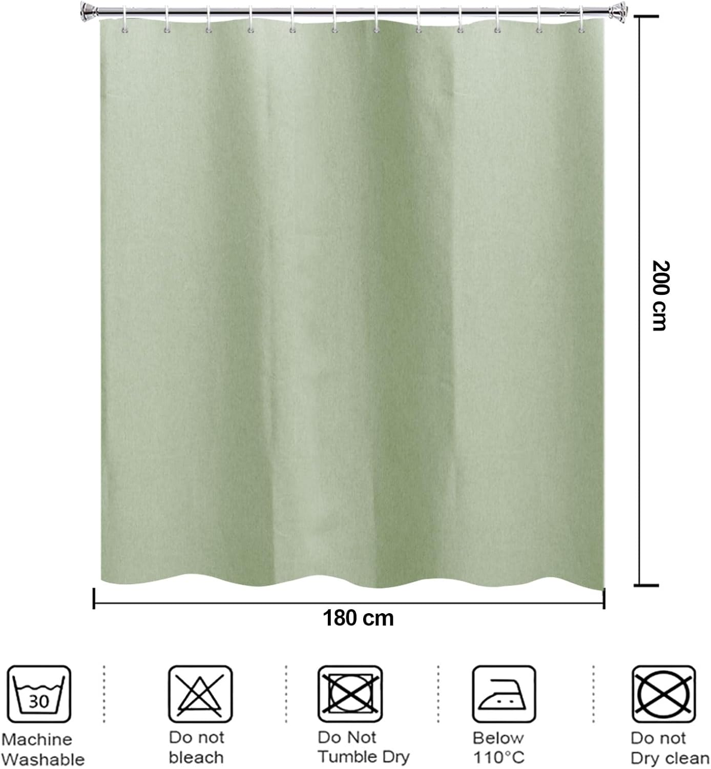 - Package Includes – Green Linen Shower Curtain with 180x200cm(1 pc) and several white plastic hooks. Shower curtain rod NOT included.