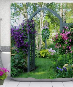 Morning Glory Garden Scenery Shower Curtain, Waterproof Polyester Fabric Purple Floral Outdoor Bathroom Curtain, Flower Bath Room Bathtub Curtain with 12 Hooks, 180X180cm