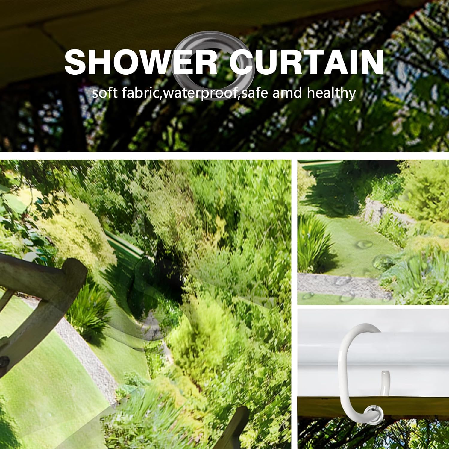 - Waterproof Material: Made from skin-friendly polyester fabric, the bath shower curtain is both soft and durable. The front and back of the fabric shower curtain are treated with waterproofing to repel water and dry quickly, keeping your bathroom clean and dry.