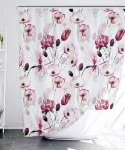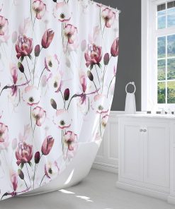 Pink Flowers Shower Curtain Floral shower curtain 180 x 180 cm Plants Bathroom Curtain Mould Proof Polyester Fabric Bath Curtain with 12 Hooks Washable Quick-Drying