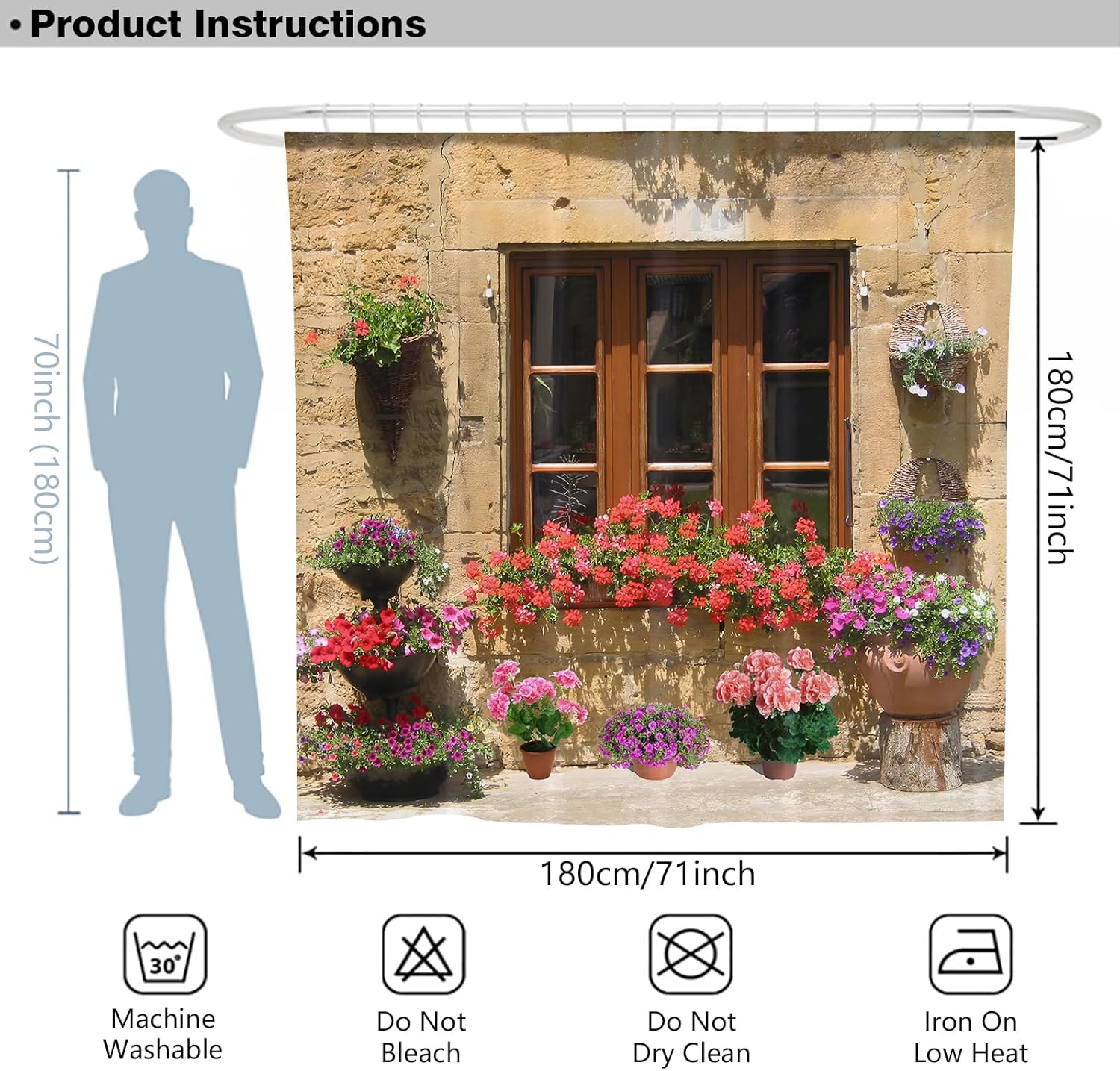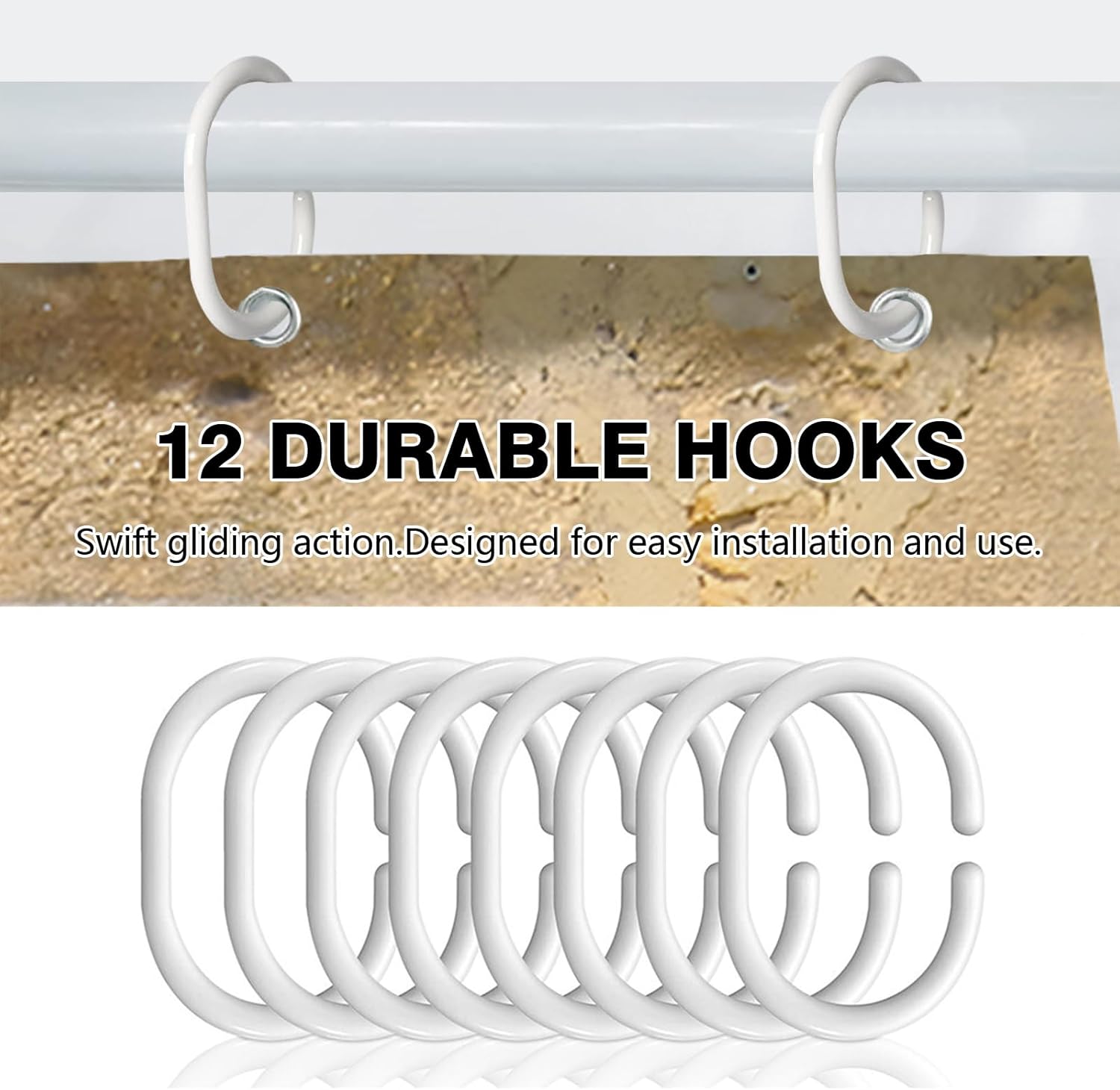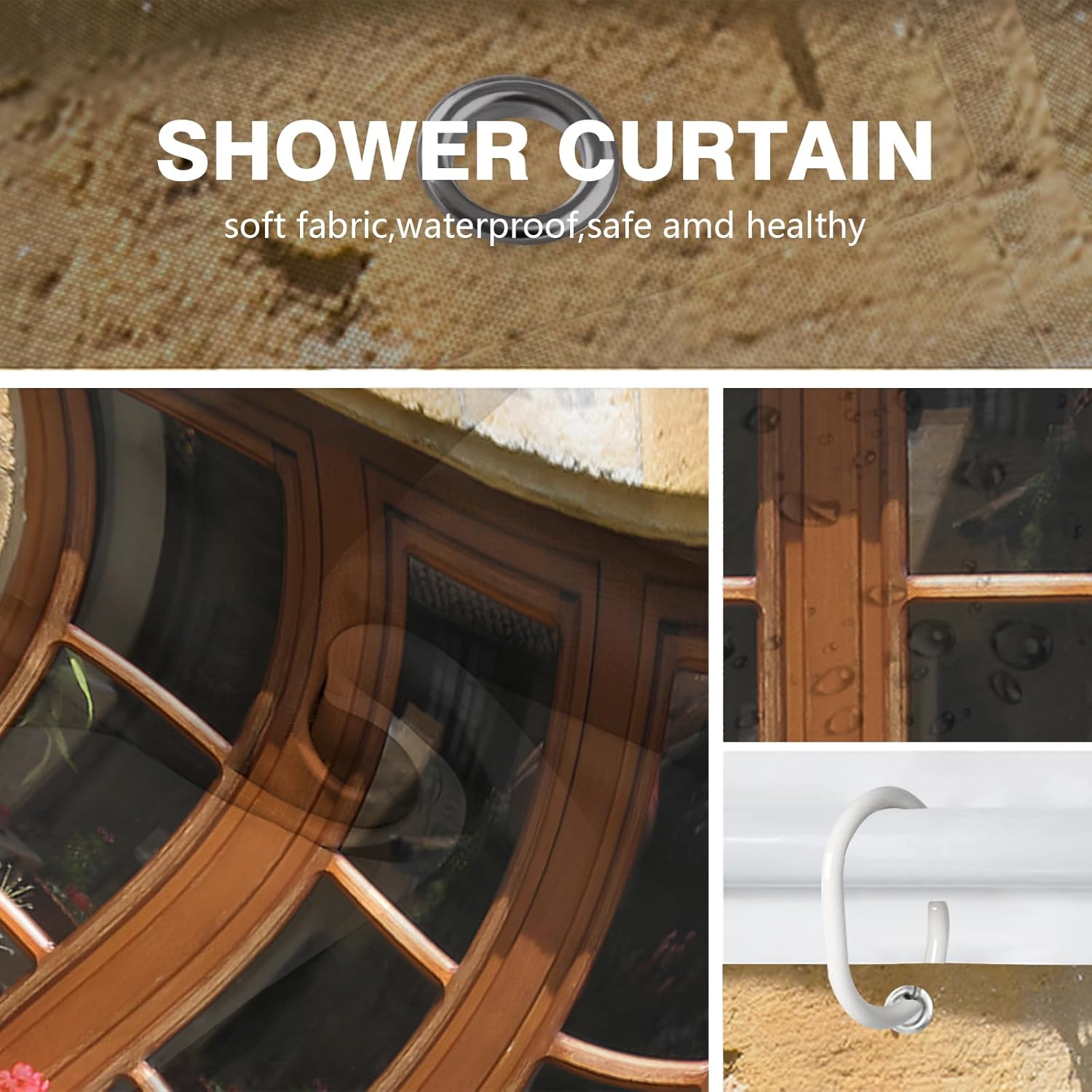 - Waterproof Material: Made from skin-friendly polyester fabric, the bath shower curtain is both soft and durable. The front and back of the fabric shower curtain are treated with waterproofing to repel water and dry quickly, keeping your bathroom clean and dry.