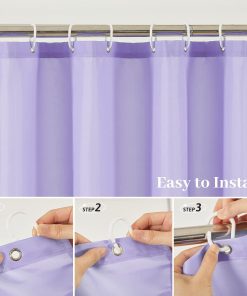 - Strengthen:First, the waterproof coating improves the water resistance of polyester fabrics.Secondly, the eyelets are reinforced by copper rings to avoid tearing.In addition, the bottom of the shower curtain has Weight Tape.