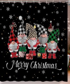 - 【DESIGN】: Christmas theme patterns-red plaid Xmas trees/Merry Christmas gnomes/snowman with present and gifts; Merry Christmas theme shower curtains includes 12 hard wearing plastic hooks, and to prevent the bathroom shower curtain from shaking and sticking when you shower, we add a weighted hem to the bottom of the shower curtain, which has a good drape effect and prevents the curtain from floating to ensure your privacy.