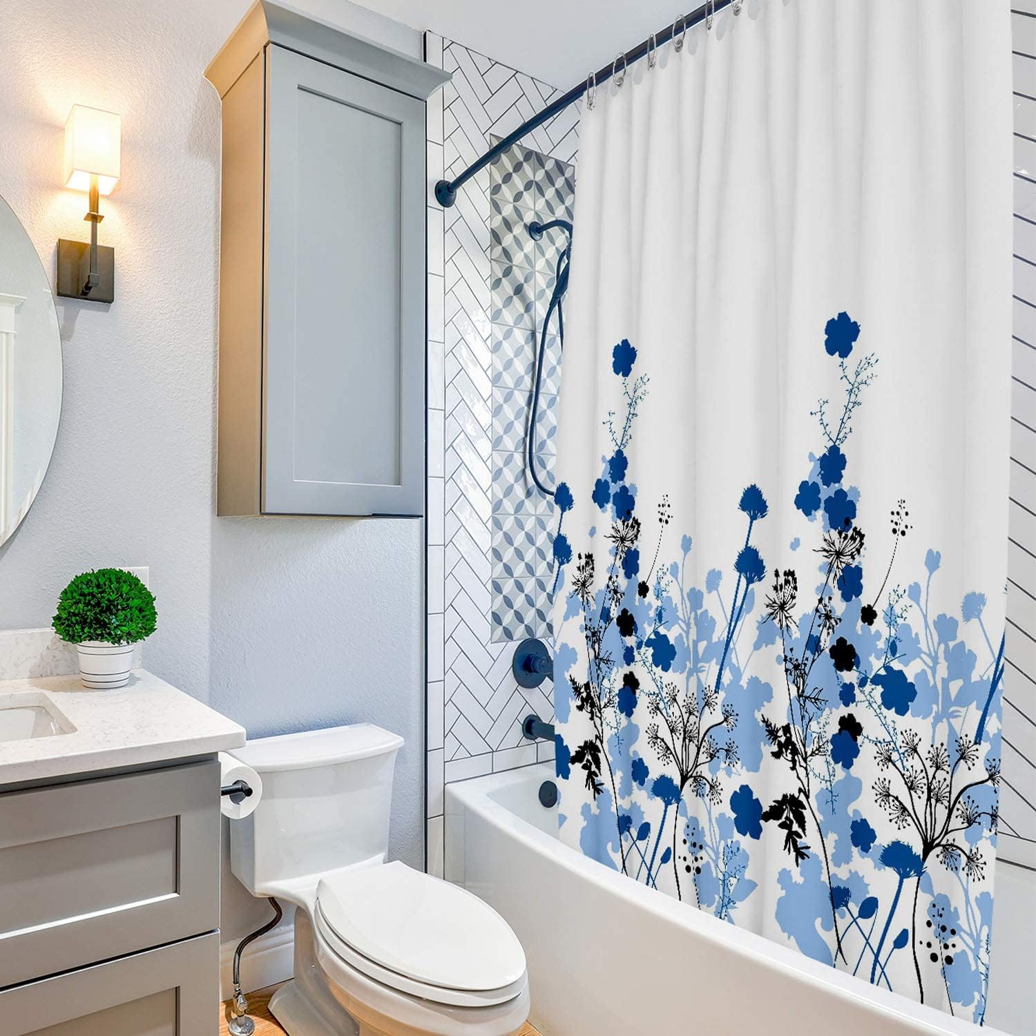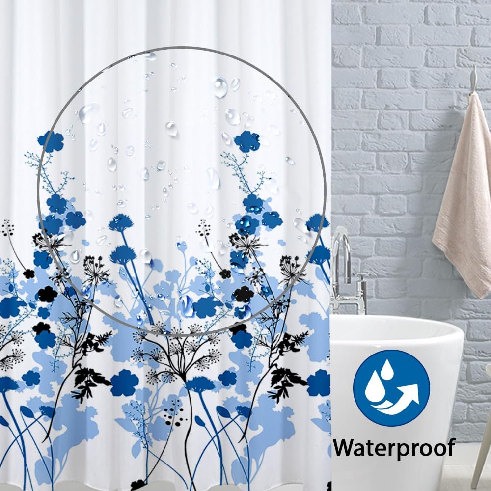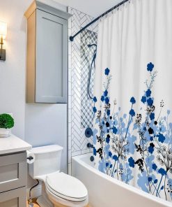 - Premium Quality Shower Curtain: Luxurious and ready-to-hang shower curtain, crafted from 100% polyester, ensuring a superior feel and long-lasting durability. This stylish piece comes in a vibrant Flower Pattern – Blue color, perfect for complementing your bathroom decor.