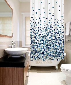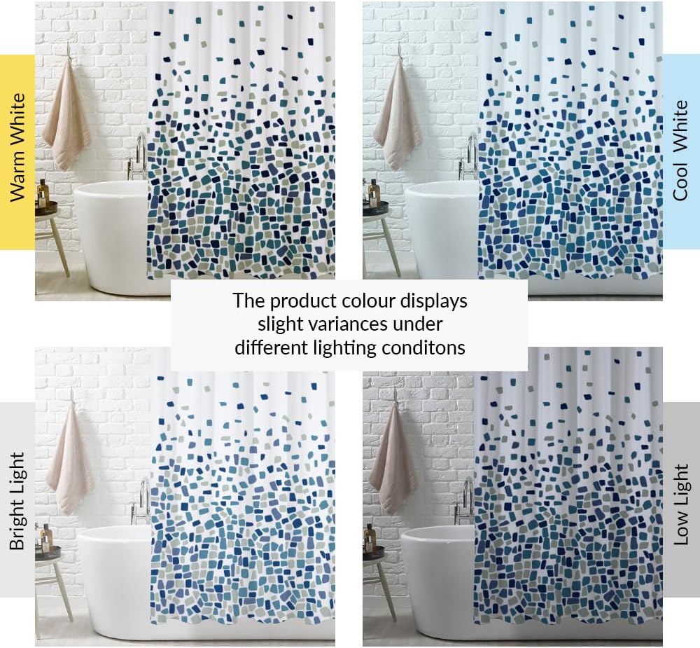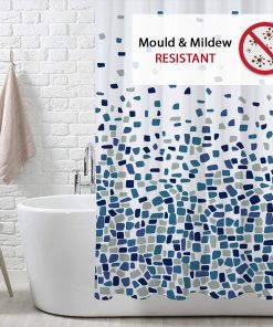 Shower Curtain for Bathroom – Mould and Mildew Resistant – Mosaic Blue, 180 x 180 cm (71 x 71 Inch) Water Repellant Fabric 100% Polyester
