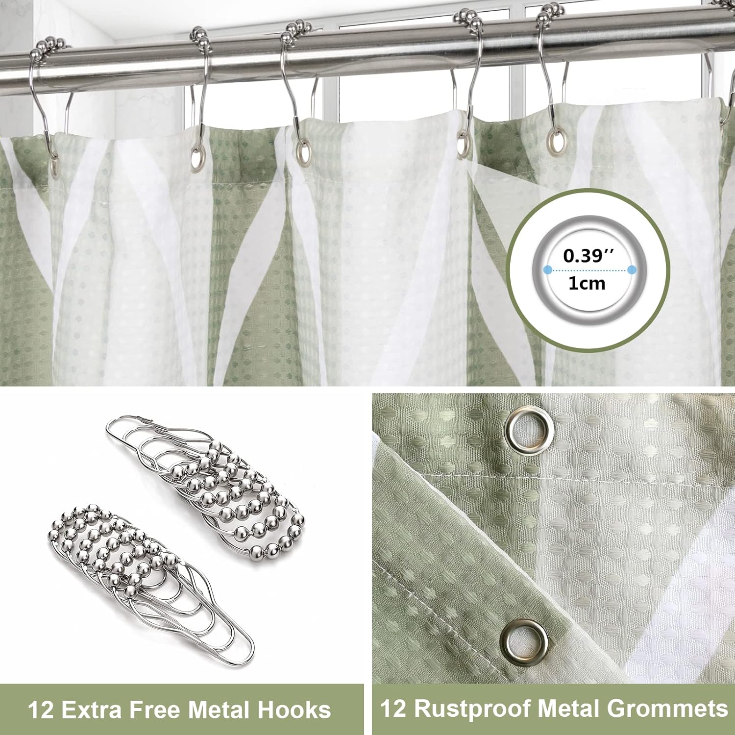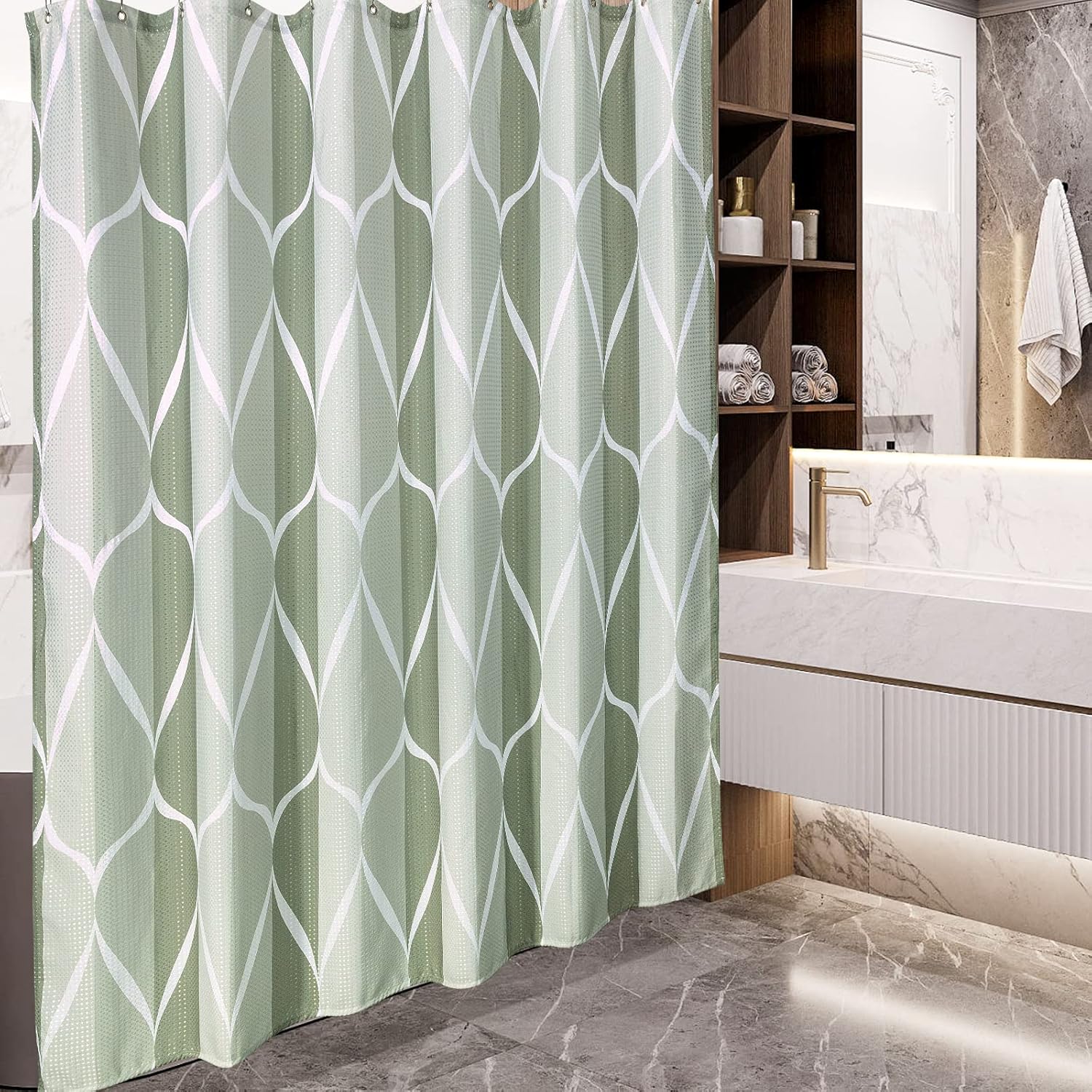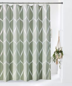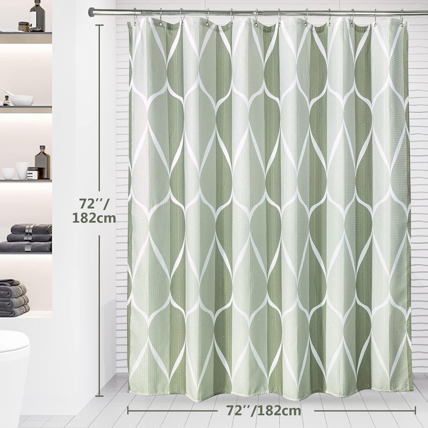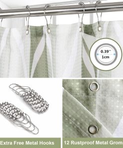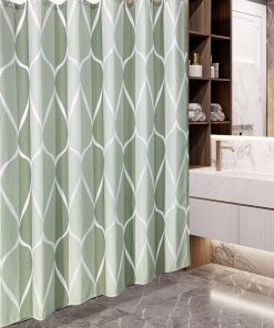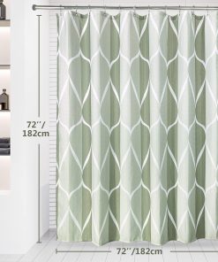 Shower Curtain for Bathroom with Metal Hooks Geometric Fabric Shower Curtain Heavy Duty Bath Curtain for Wet Room Bathtub Shower Stall, Weighted Hem, Water Resistant – 182 x 182cm (Green)