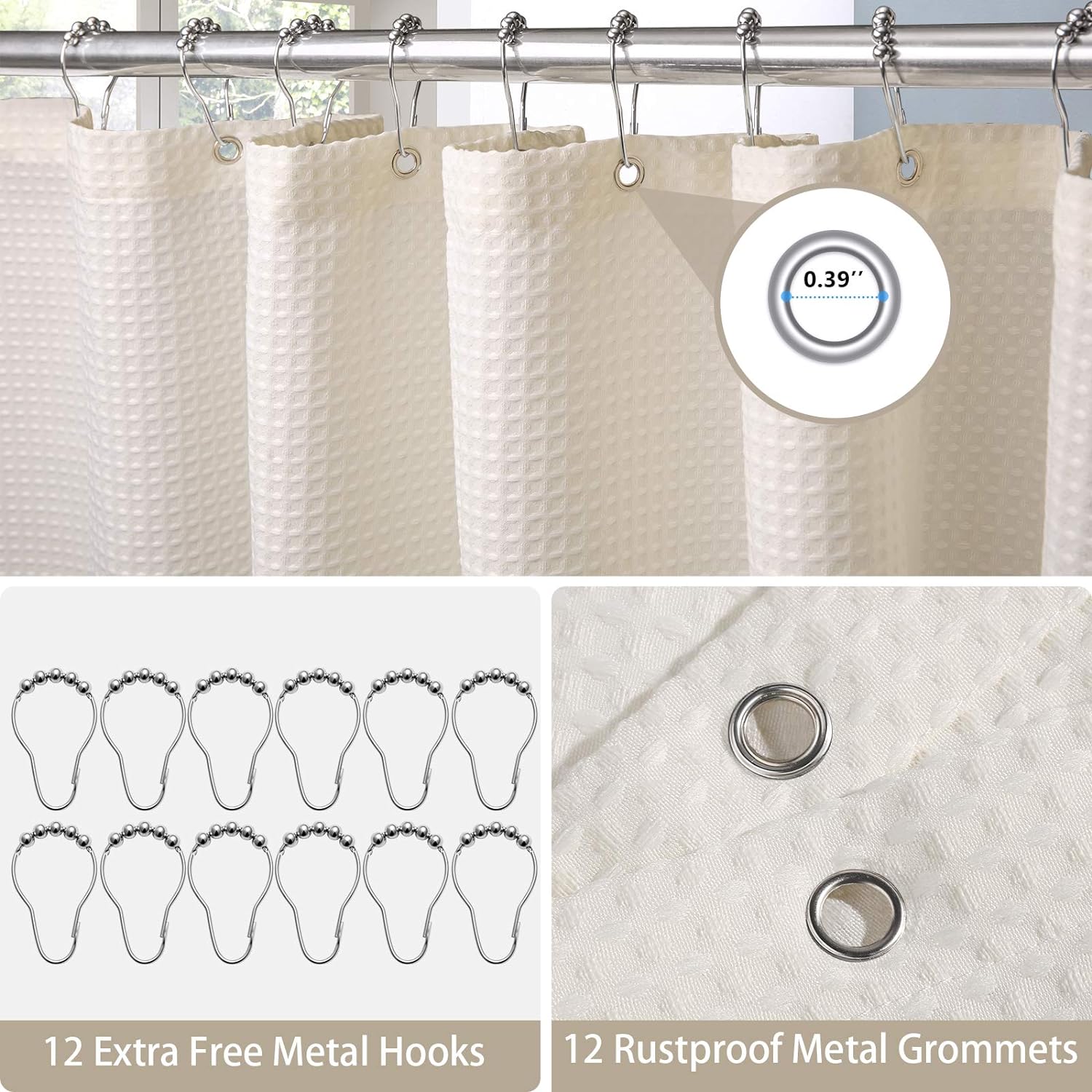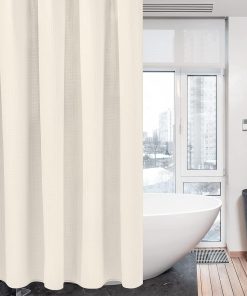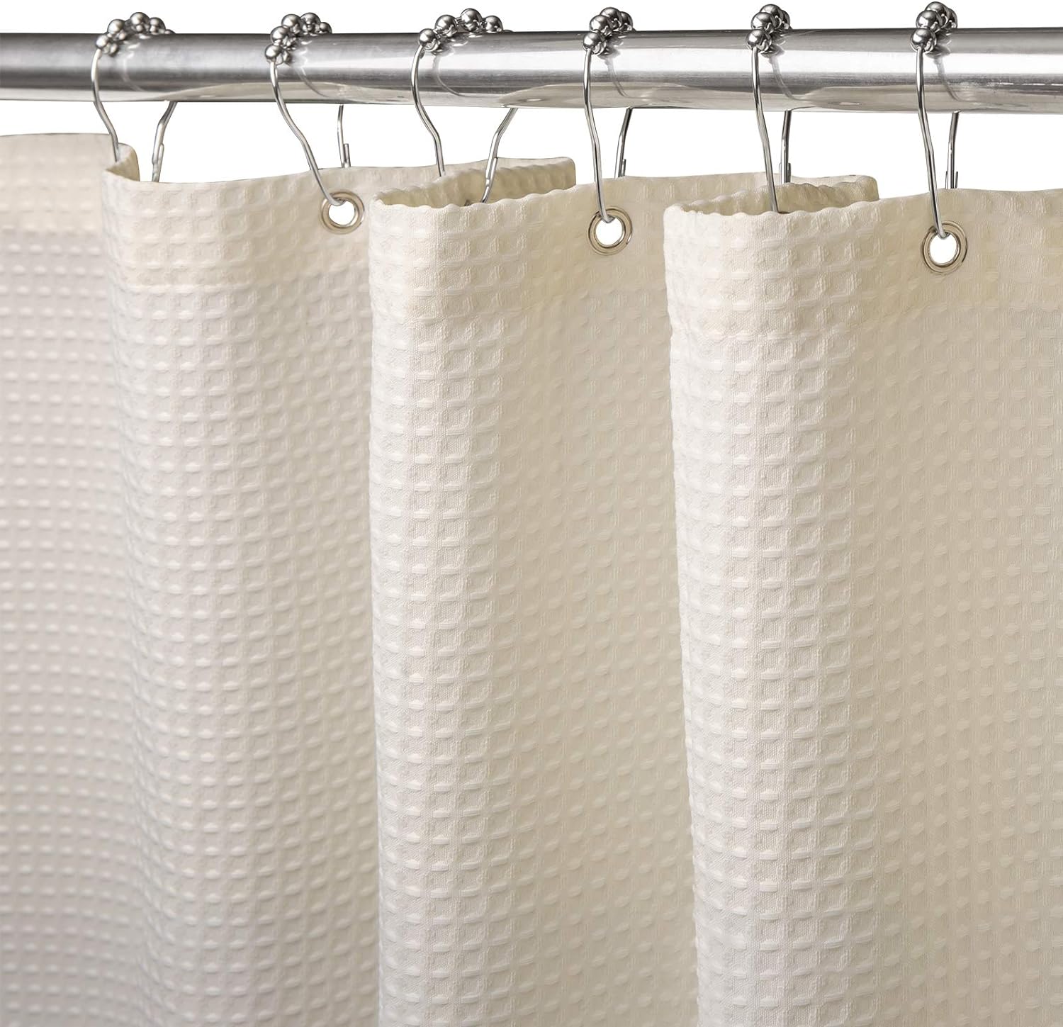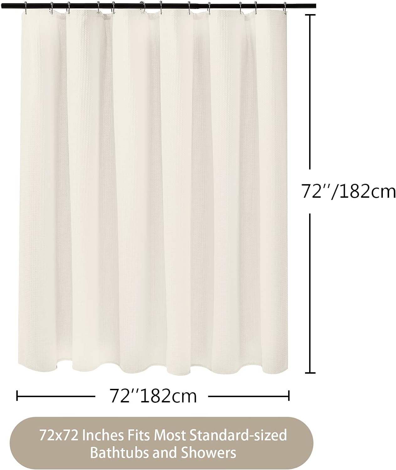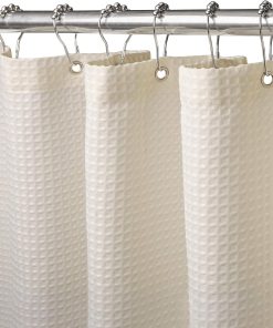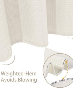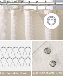 Shower Curtain for Bathroom with Metal Hooks Waffle Fabric Shower Curtain Heavy Duty Bath Curtain for Wet Room Bathtub Shower Stall, Weighted Hem, Water Resistant – 182 x 182cm (Cream)
