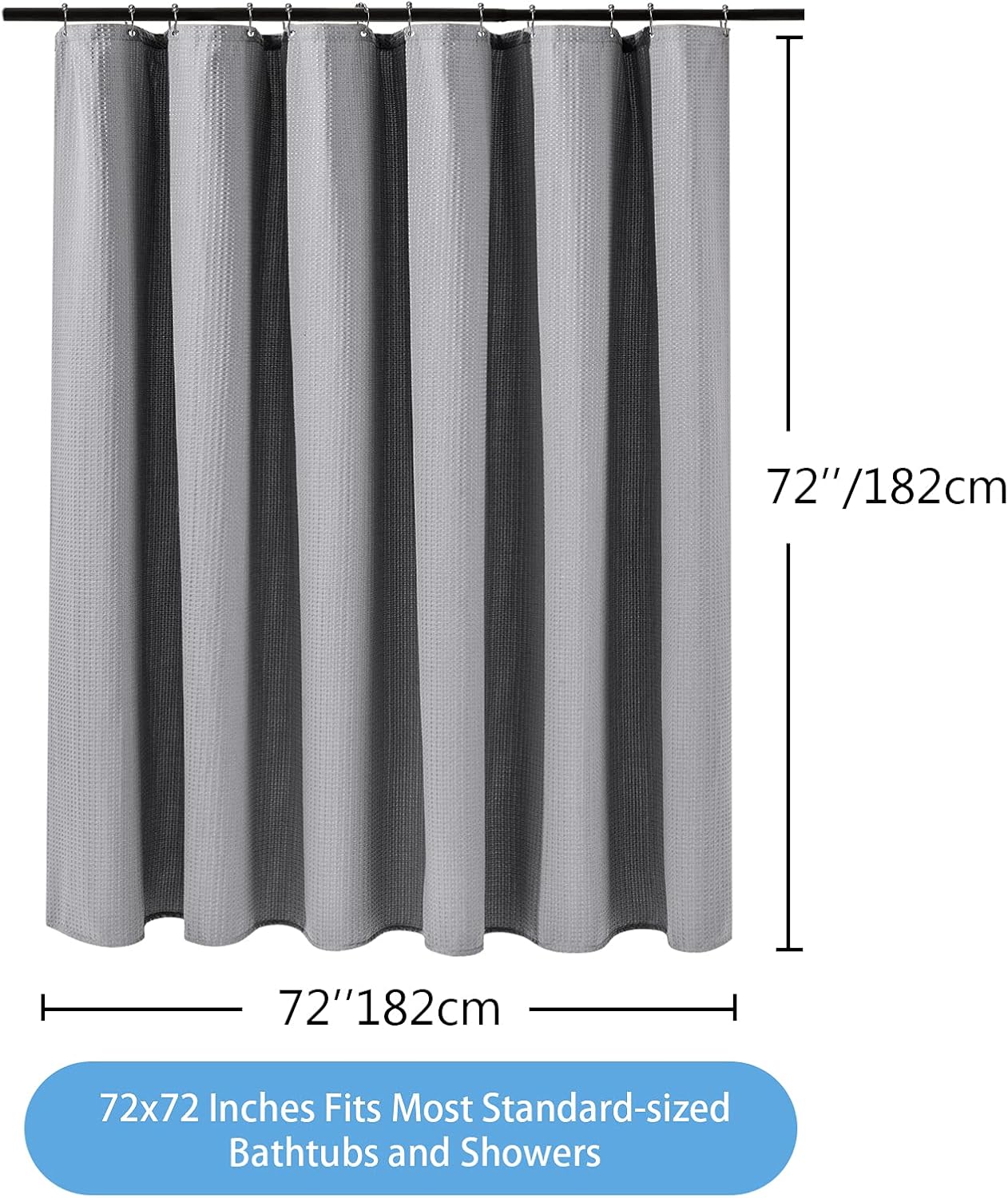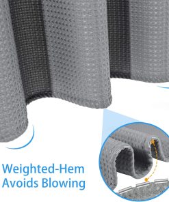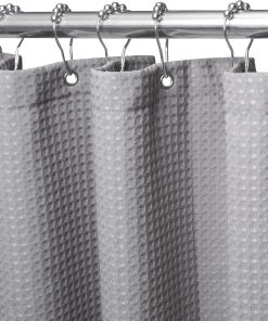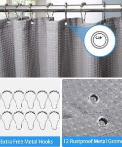 Shower Curtain for Bathroom with Metal Hooks Waffle Fabric Shower Curtain Heavy Duty Bath Curtain for Wet Room Bathtub Shower Stall, Weighted Hem, Water Resistant – 182 x 182cm (Grey)