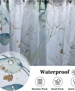 - 【 Green and Gold Leaf Shower Curtains】: This green and gold leaves shower curtain with advanced high-definition printing technology. The pattern is clear, vivid, fadeless, waterproof and durable. Green and gold leaves shower curtains, create different atmosphere, make you enjoy relaxed nature’s scenery in nervous city.