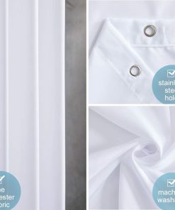 - Strengthen:First, the waterproof coating improves the water resistance of polyester fabrics.Secondly, the eyelets are reinforced by copper rings to avoid tearing.In addition, the bottom of the shower curtain has Weight Tape.