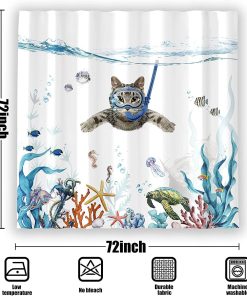 - VIVID & INTERESTING: The shower curtain set is depicted a 3D HD funny cat pattern that has been diving on sea ocean, which is very eye catching to bring your bath shower more fun and the joyful laughter of your child to enjoy shower. Like swimming in the ocean world