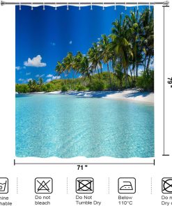 - Package Include: 1pc of Seaside Palm Tree shower curtain, 71″x79″ /180x200cm and several white plastic hooks. Shower curtain rod is NOT included