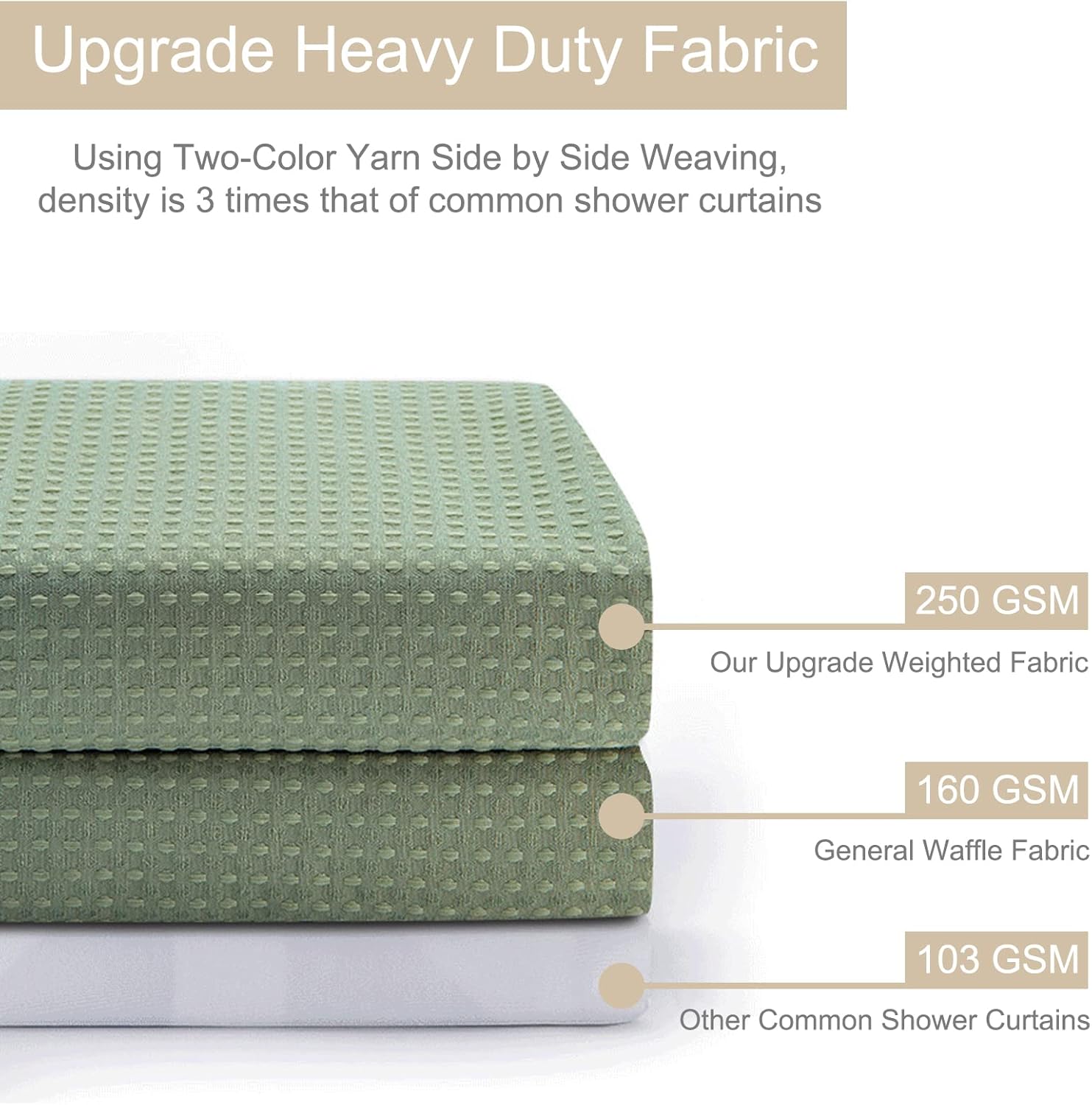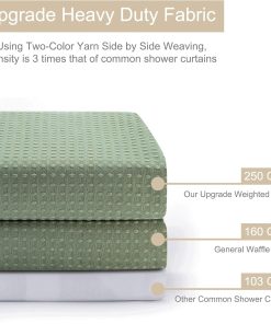 - 【250GSM Heavy-Duty Fabric】Compared with most ordinary fabric shower curtains, we use 250GSM thicker polyester fabric, therefore, our bath curtain has a longer service life and a fuller drape. Soft to touch. Opaque to protect personal privacy. Classic and simple waffle design loved over time.