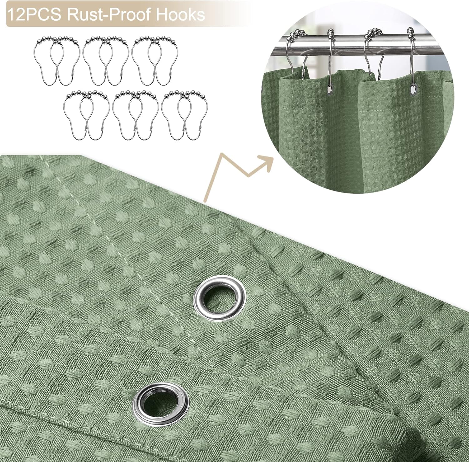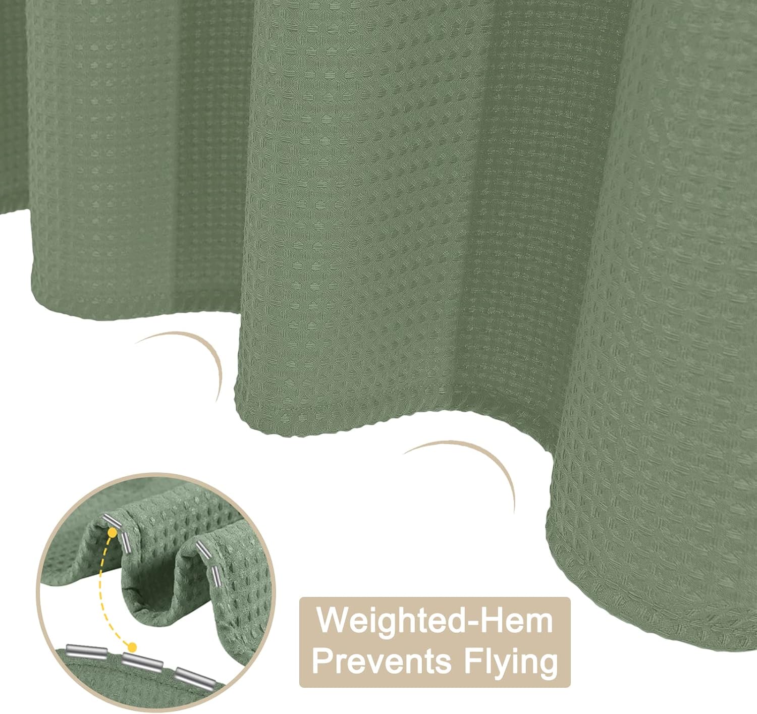 - 【Anti-Rust Weighted Bottom】For better shower experience, our waffle shower curtain is specially designed with a waterproof weighted strip, which will not flutter easily, keep away from your body, and do a better job of wet and dry separation.