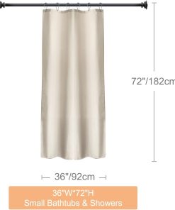 Waterproof Shower Curtain, 182x92CM Linen Bathroom Curtain with Impemeable Coating Mould and Mildew Resistant Fabric Bath Curtain-Polyester/Quick-Drying/Weighted Hem – Beige
