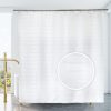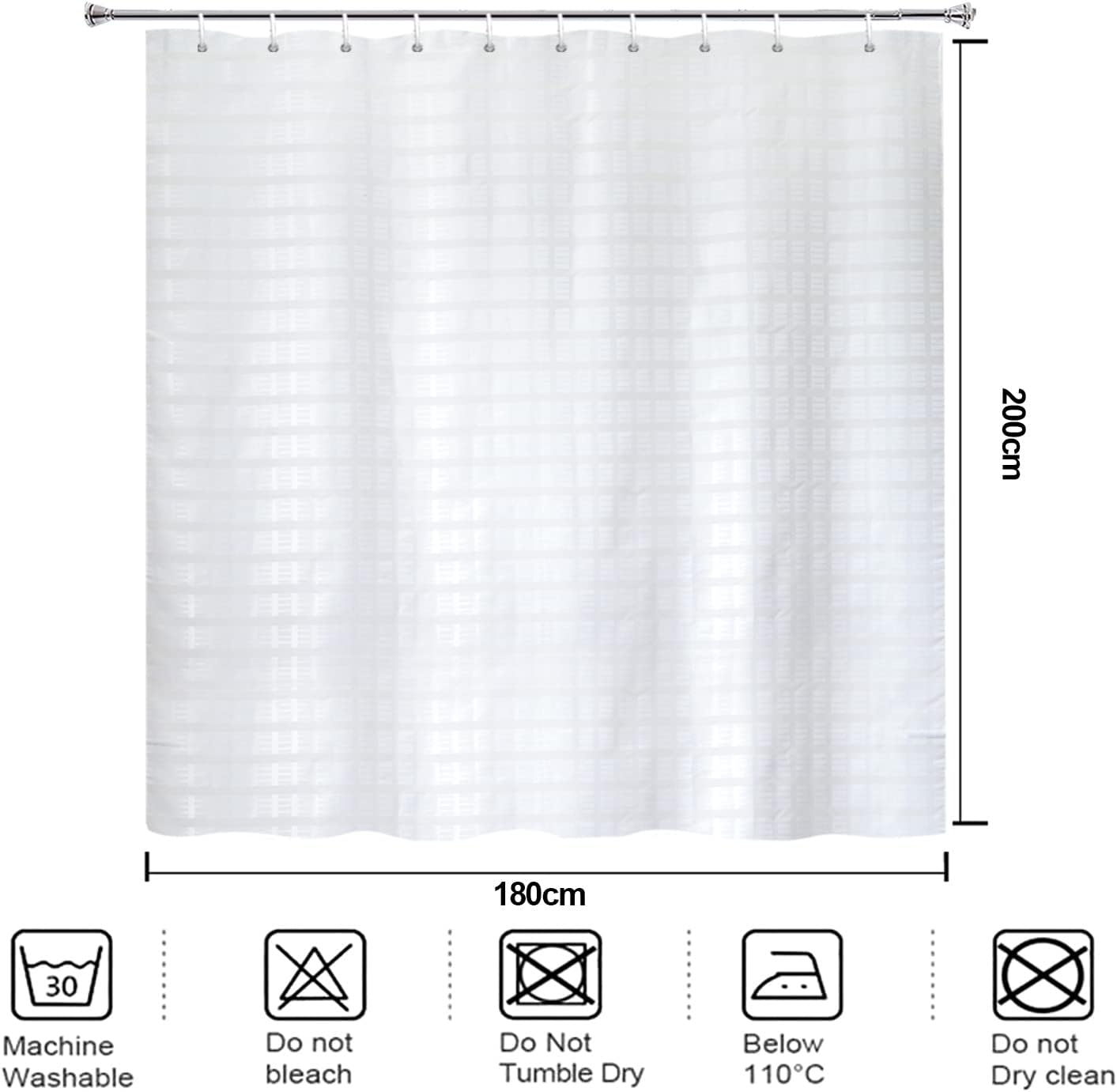 - Package Include: 1pc of white jacquard shower curtain, 71″W x79″L /180 x 200cm and 12 white plastic hooks. Shower curtain rod NOT included
